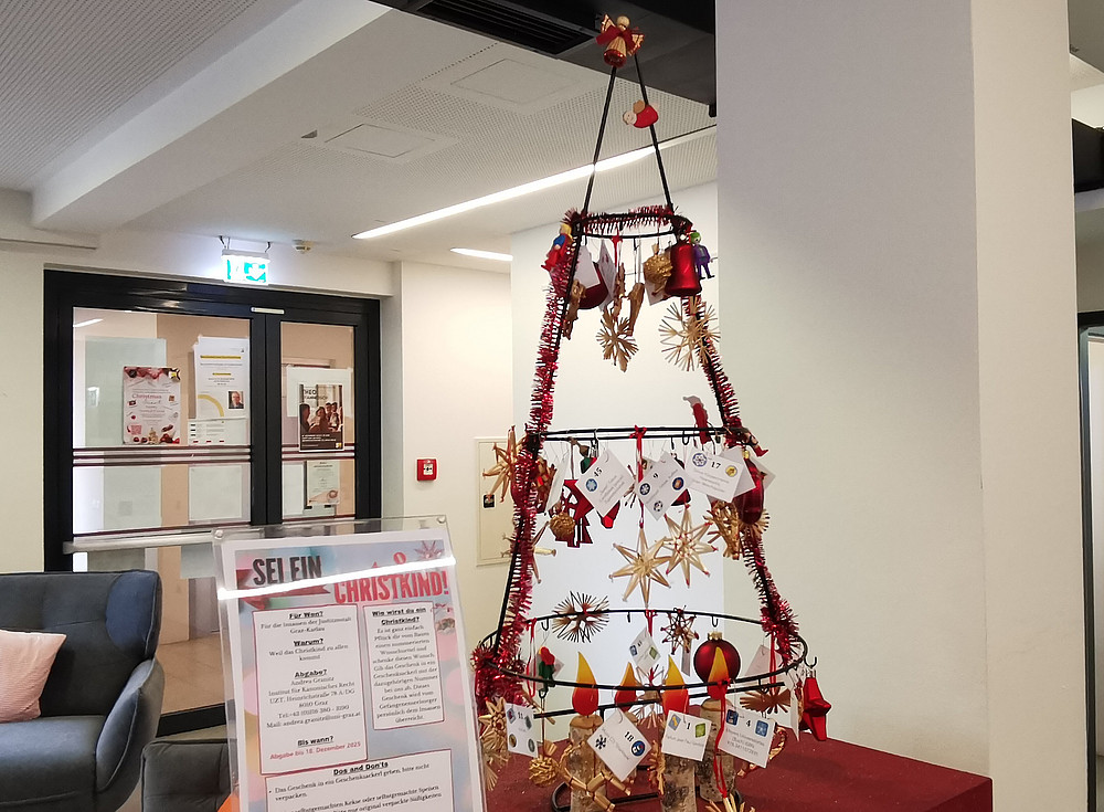 Seit dem 1. Dezember erstrahlt in unserer Cafeteria im UZT erneut der liebevoll geschmückte Wünschebaum, der Vorfreude auf die besinnliche Weihnachtszeit versprüht. Wie jedes Jahr lädt er herzlich dazu ein, Wünsche zu pflücken und für die Insassen der Justizanstalt Graz-Karlau zu erfüllen. Dabei gelten auch heuer die folgenden Regeln: